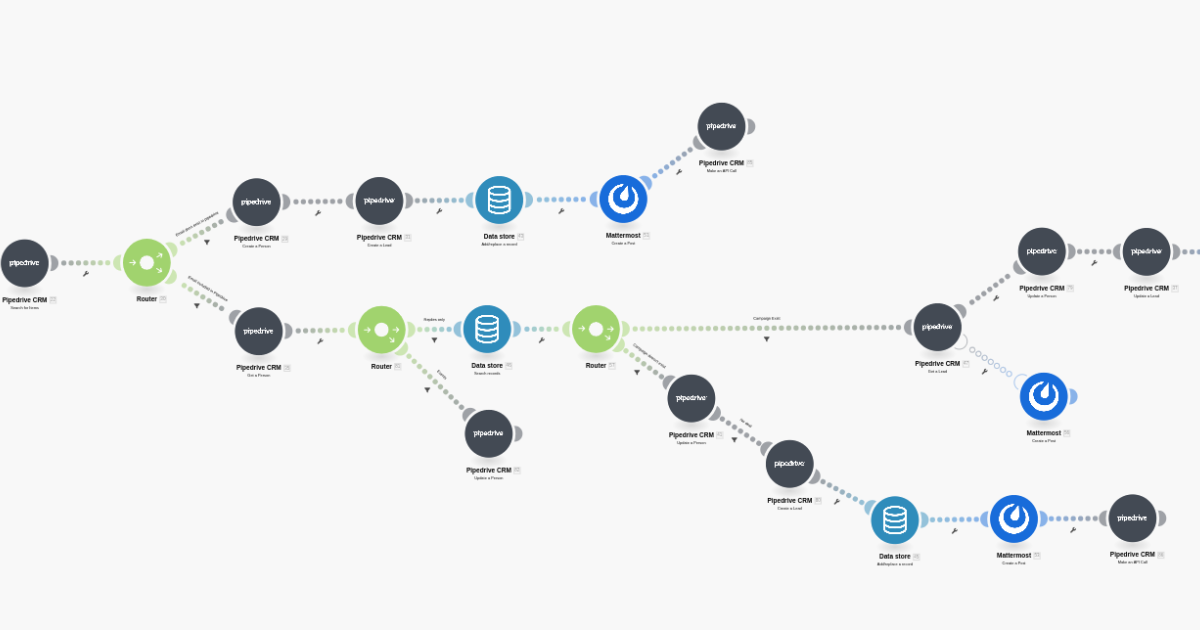 Creating a lead on the sales CRM alone is not enough; There should be a mechanism to create and assign a task to the responsible person. In our system, a message is pushed to the sales channel in Mattermost whenever a lead is created, and an activity is created in the Pipedrive with a due date.