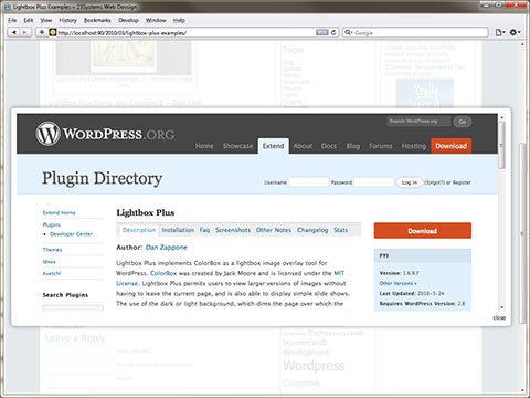 Lightbox Plus is a Wordpress plugin that permits users to view larger versions of images, simple slide shows, videos and content all in an overlay. It uses the popular colorbox jquery plugin.