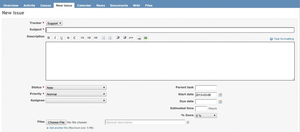 - Target version: The tasks may be divided into different sets say set1, set2 and so on. This is done for setting targets with an intention to finish that set of task in a given period of time. Here select the target of your bug accordingly (according to the needs of your project).
